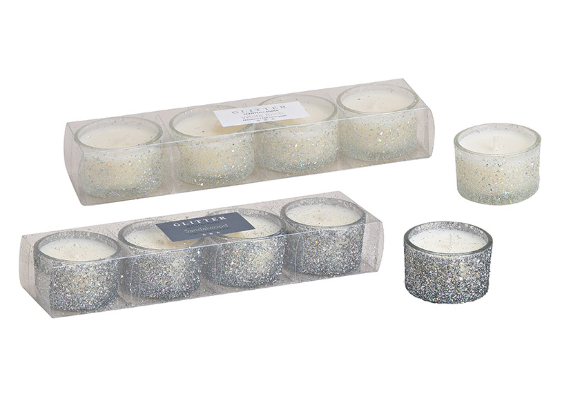 0-Porta Velas Vaso Brillantina 3X5X3Cm Blanco / Gris 2-Mod.T. 4 Juegos 21X3X5Cm
